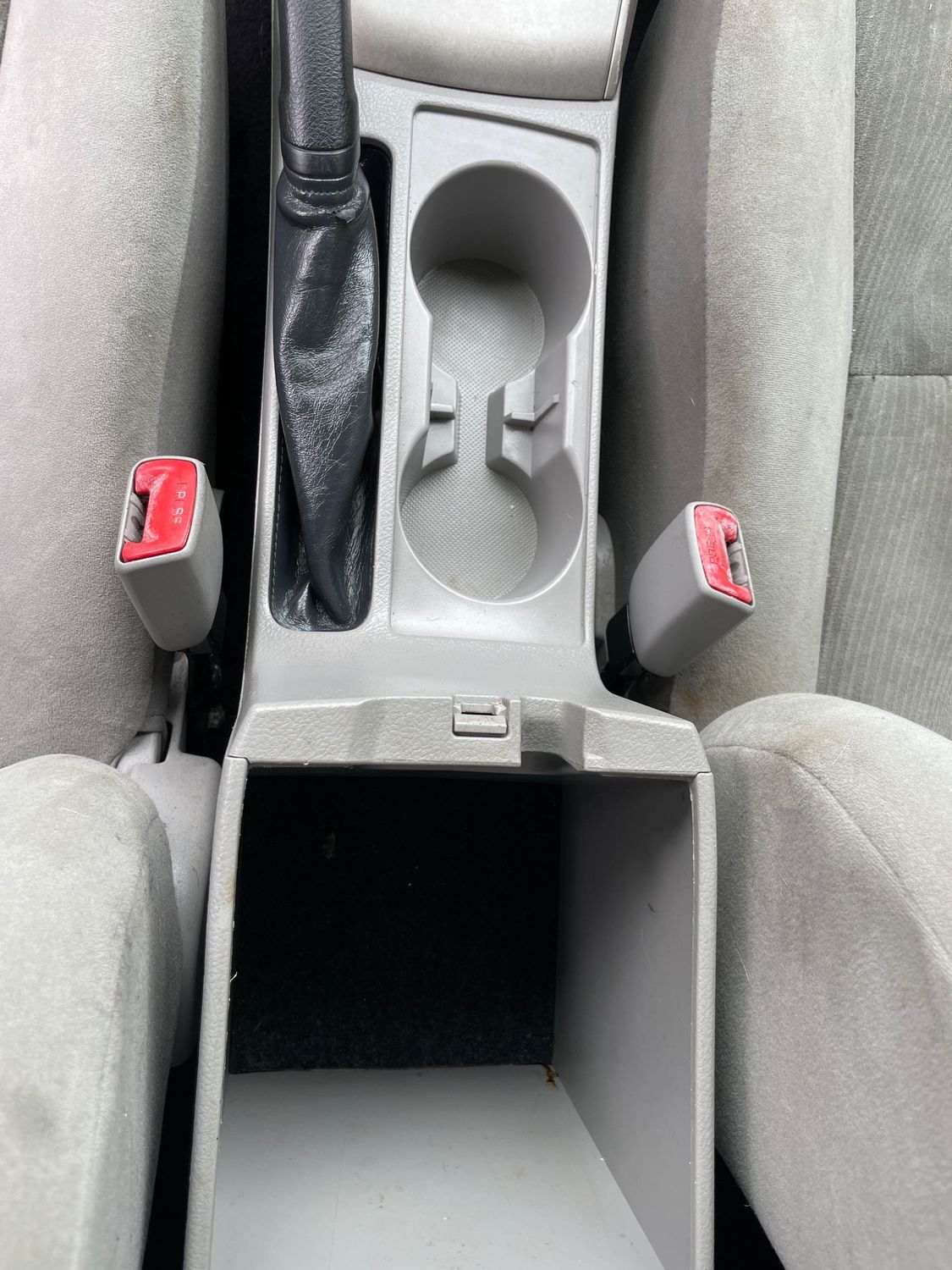 Floor console storage: Covered floor console storage