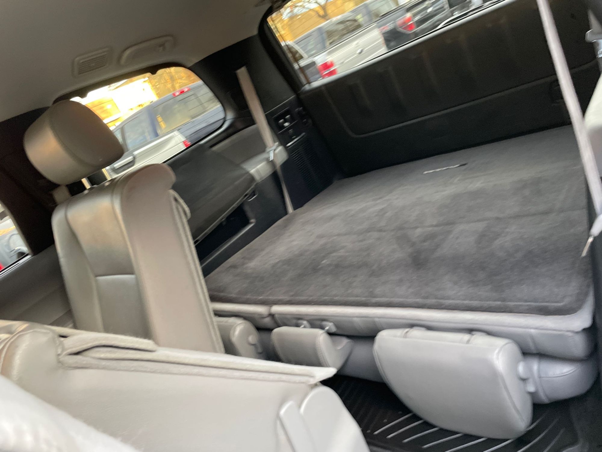 Third-row seatback upholstery: Carpet third-row seatback upholstery