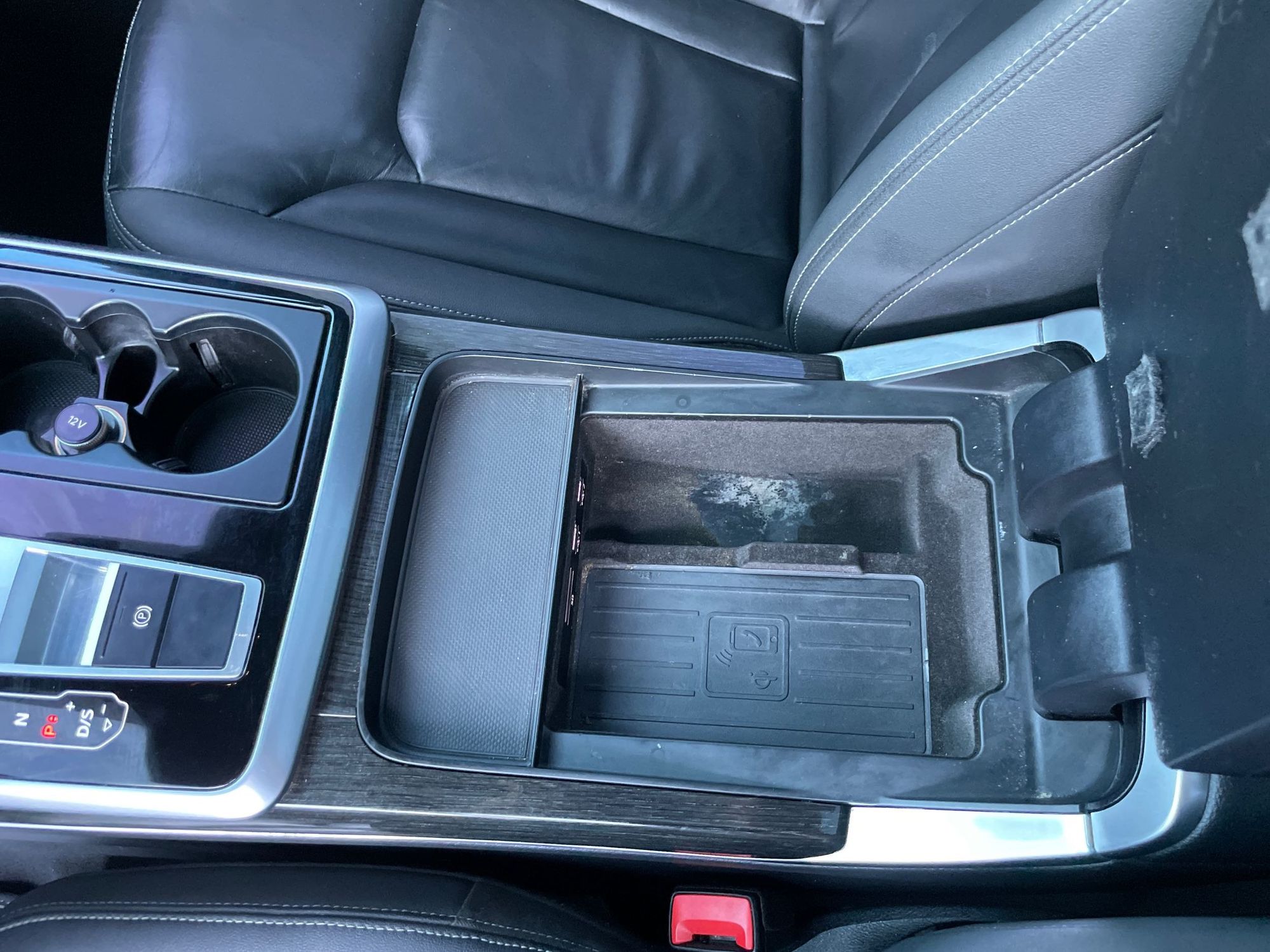 Floor console storage: Covered floor console storage
