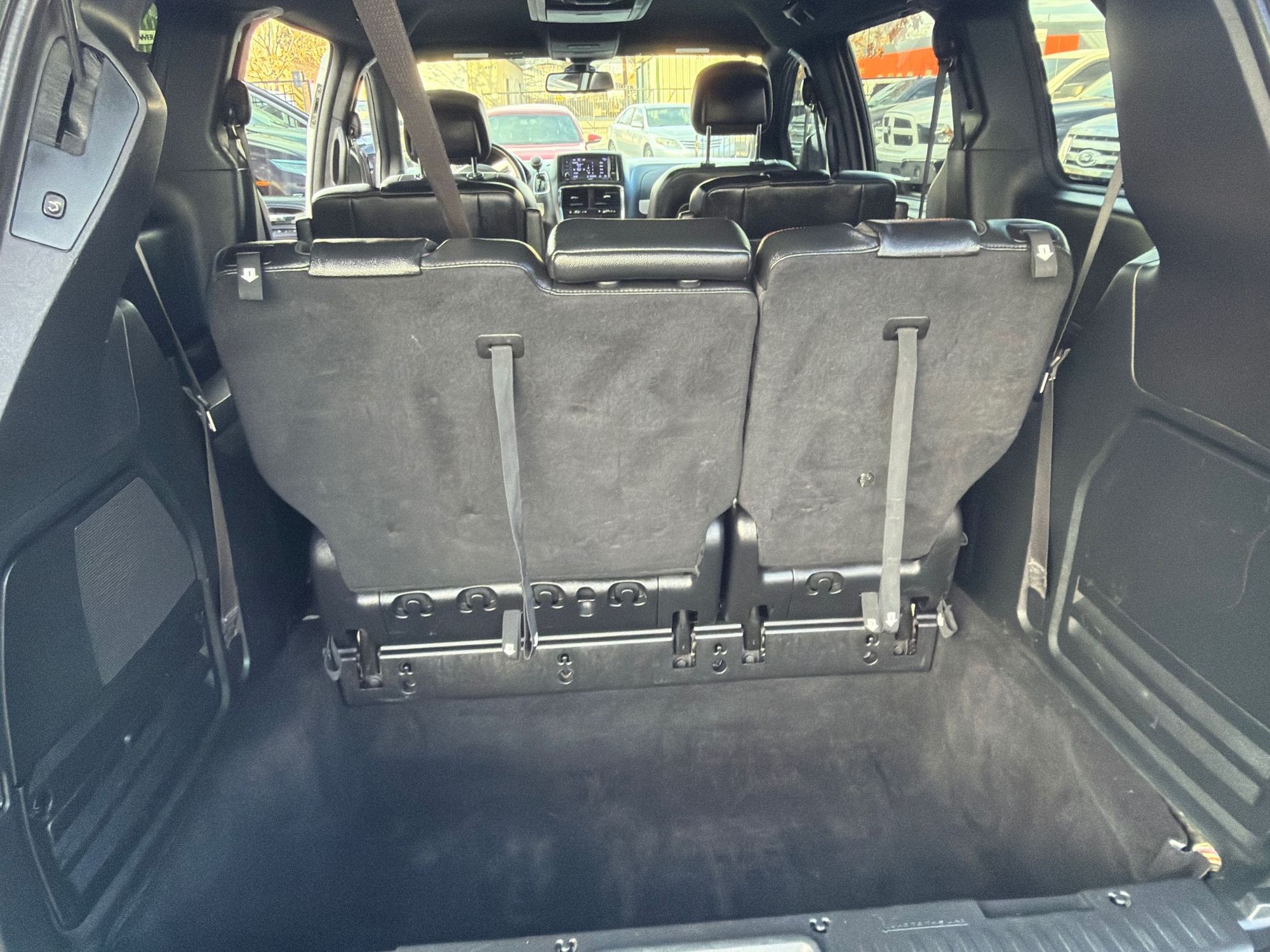 Third-row seatback upholstery: Carpet third-row seatback upholstery